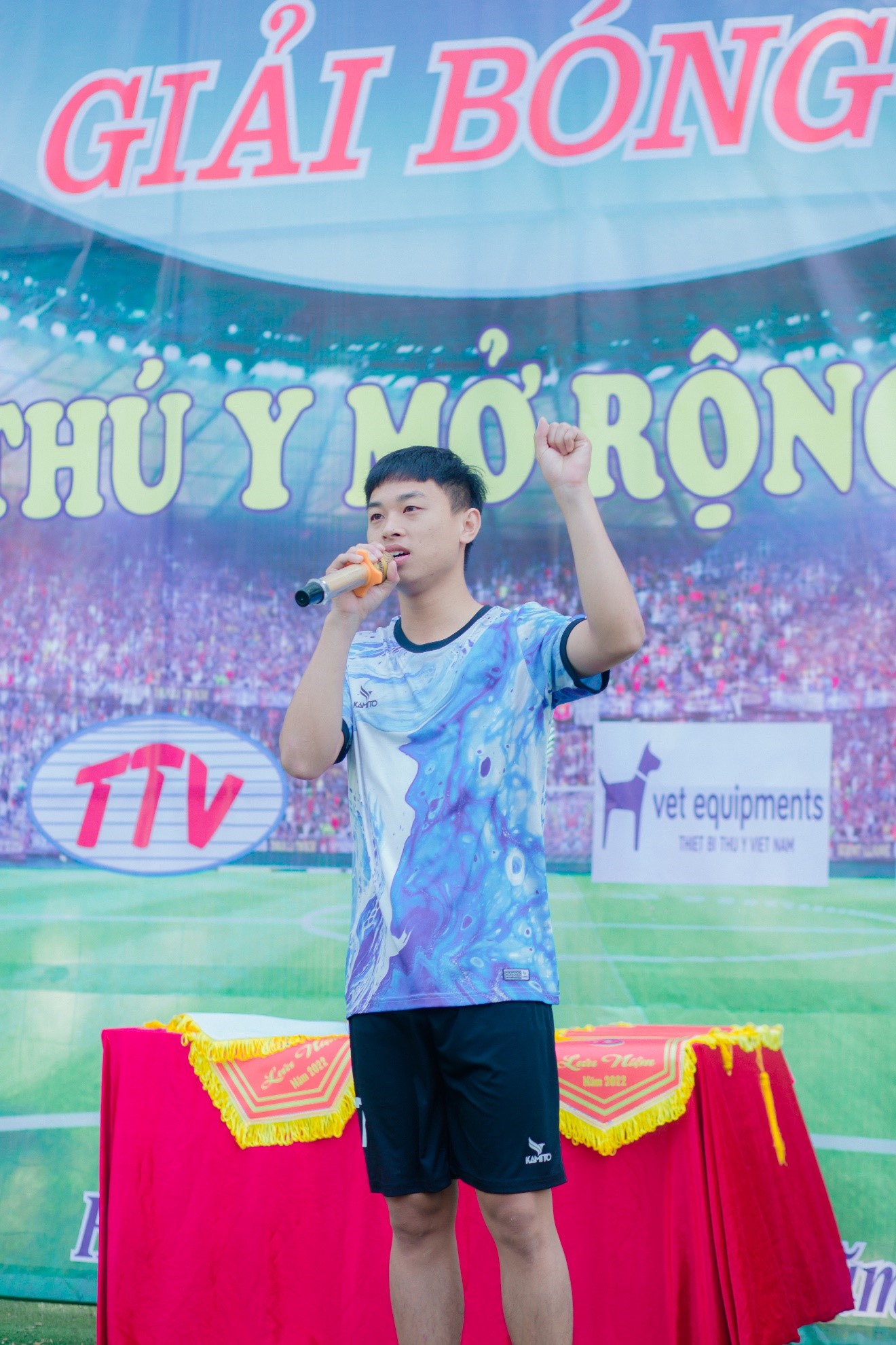 Để giải đấu được chính thức bắt đầu TS. Hoàng Minh đại diện cho ban tổ chức đã lên phát biểu chính thức khai mạc ” Giải bóng đá khoa Thú Y mở rộng lần thứ nhất ” với những lời chúc khích lệ tinh thần và tốt đẹp nhất đến giải bóng.
