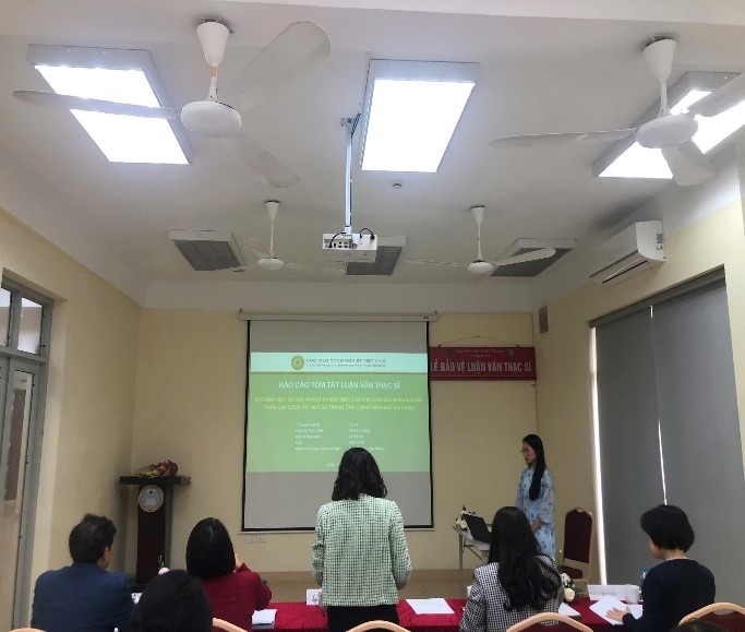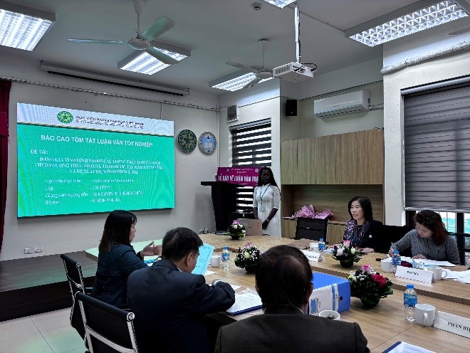 Tại các hội đồng chấm luận văn, từng học viên đã trình bày tóm tắt luận văn của mình, sau đó Hội đồng đã đánh giá, nhận xét những ưu điểm, hạn chế về cả hình thức lẫn nội dung các luận văn. Hội đồng cũng đặt ra những câu hỏi phản biện nhằm đánh giá kiến thức chuyên môn, hiểu biết thực tiễn và quá trình nghiên cứu của các học viên. Các học viên đều thể hiện sự tự tin khi báo cáo và trả lời câu hỏi của hội đồng, khẳng định được sự nghiêm túc, tự giác và kiến thức chuyên môn vững vàng trong suốt quá trình học tập và nghiên cứu tại khoa Thú y, Học viện Nông nghiệp Việt Nam.