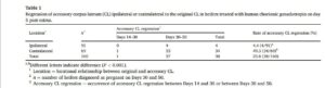 Bảng 1: Sự thoái hóa thể vàng phụ ở trên cùng một buồng trứng (Ipsilateral) hoặc trên buồng trứng đối diện (Contralateral) so với thể vàng chính ở bò cái tơ được điều trị bằng hCG vào ngày thứ 5 sau động dục.
