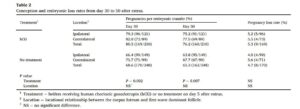 Bảng 2: Tỷ lệ mang thai và mất phôi từ ngày 30 đến ngày 50 sau khi động dục.