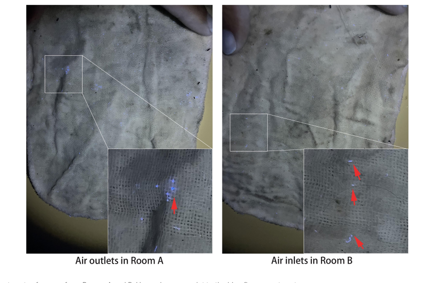 Hình 2. Các đốm huỳnh quang của gạc từ Phòng A và B.