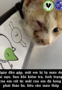 Chột được tìm thấy trong tình trạng bị thương 1 bên mắt do tai nạn nằm thoi thóp ngoài vệ đường. Và ngay lập tức bé đã được đưa đến trung tâm thú y Funpet- Hà Nội để tiến hành chẩn đoán và chữa trị.