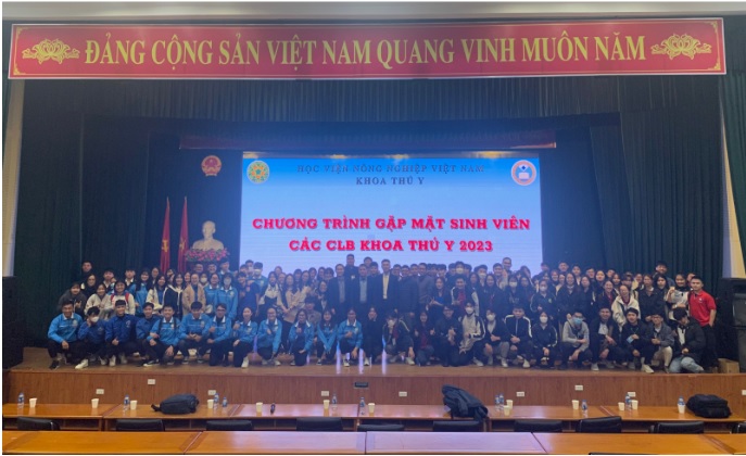 Tối ngày 17/02/2022, tại Hội trường A (Nguyễn Đăng 207 – Học viện Nông nghiệp Việt Nam), ban chủ nhiệm khoa Thú y đã tổ chức chương trình “Gặp mặt sinh viên các CLB khoa Thú y 2023” nhằm cung cấp cho sinh viên, đặc biệt là những sinh viên tham gia các hội, nhóm, CLB của khoa những định hướng, mục tiêu rõ ràng cho việc học tập, giúp sinh viên hiểu hơn các quy chế hoạt động của CLB trong năm học này.