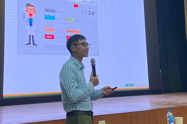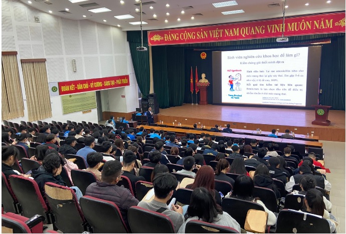 Tiếp đó, thầy Nguyễn Hoài Nam có phần chia sẻ về “Giới thiệu công tác nghiên cứu khoa học và cơ hội nghiên cứu khoa học cho sinh viên”. Thầy khuyến khích sinh viên tích cực học tập, tham gia nghiên cứu khoa học để phát triển bản thân, mở ra nhiều hướng đi tiềm năng trong tương lai, đồng thời góp phần nâng cao chất lượng hoạt động và đào tạo của khoa Thú y – Học viện Nông nghiệp Việt Nam.