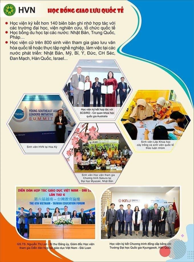 ? Học viện ký kết hơn 140 biên bản ghi nhớ hợp tác với các trường đại học, viện nghiên cứu, tổ chức quốc tế ở khắp các châu lục, mở ra trên 800 cơ hội giao lưu quốc tế, thực tập nghề nghiệp, làm việc cho sinh viên Học viện.