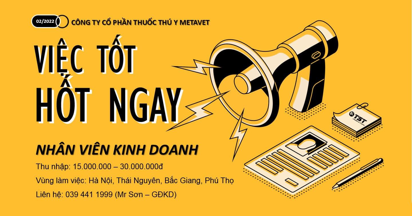 CÔNG TY CỔ PHẦN THUỐC THÚ Y METAVET liên tục tuyển dụng nhân viên kinh doanh