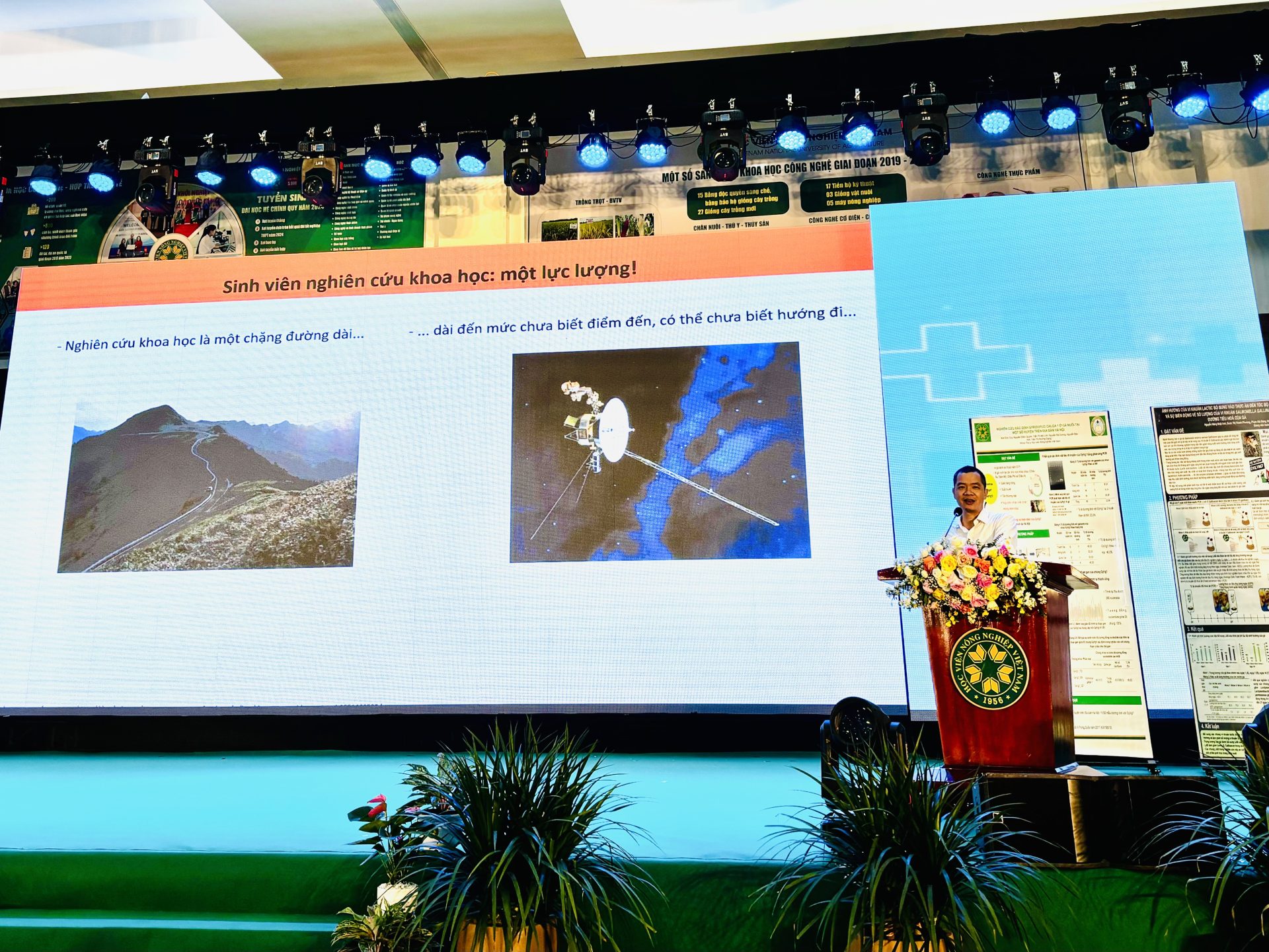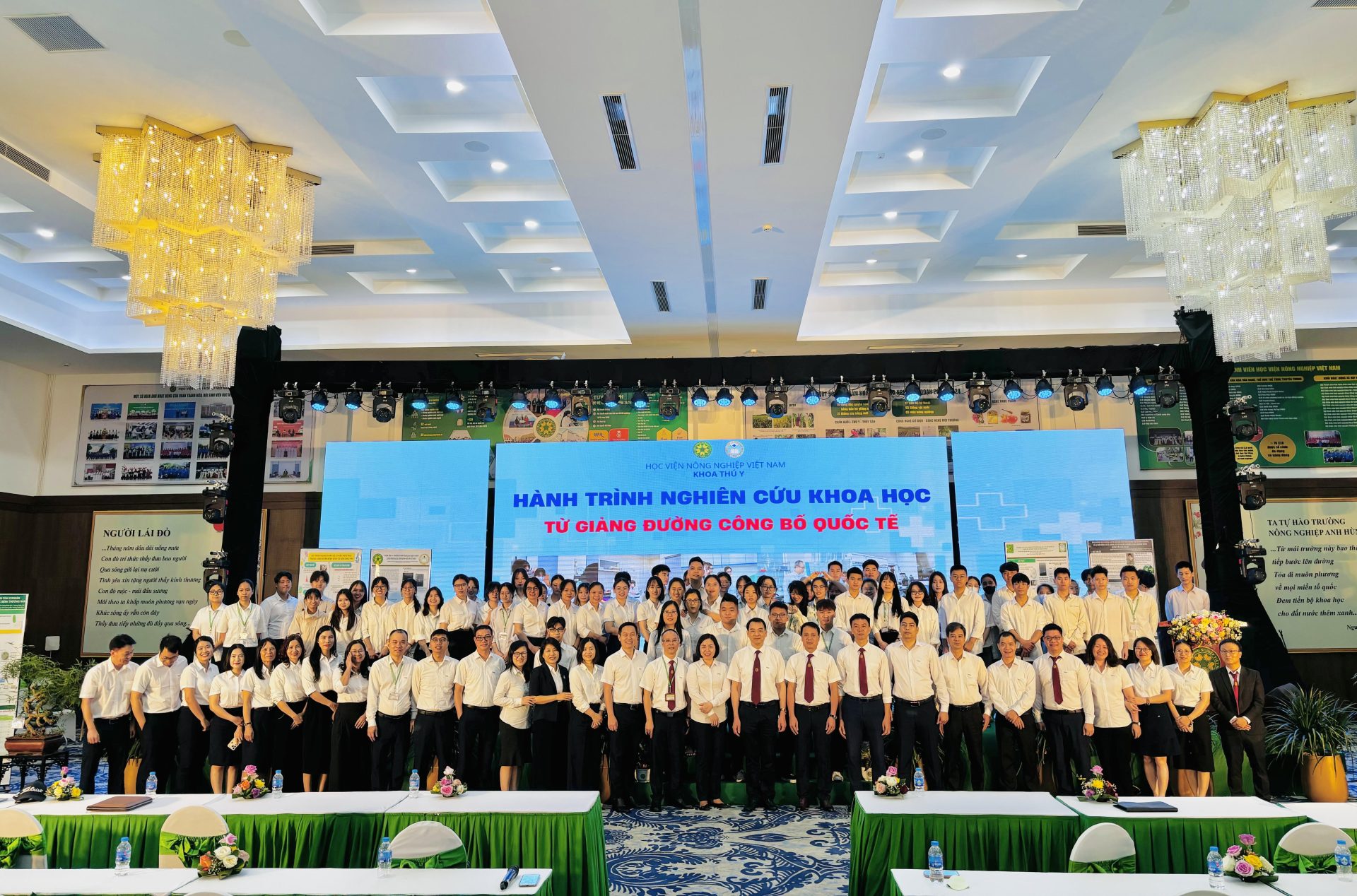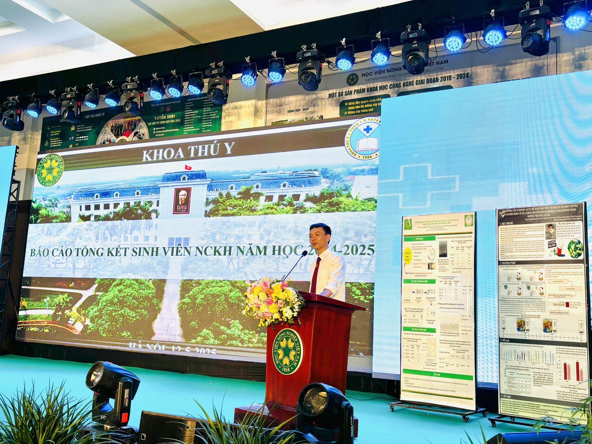 Sáng ngày 12/5/2025, tại Hội trường Quốc tế – Học viện Nông nghiệp Việt Nam, Khoa Thú y đã tổ chức chương trình “Hành trình nghiên cứu khoa học: Từ giảng đường đến công bố quốc tế”. Đây là một sự kiện quan trọng nhằm hưởng ứng ngày Khoa học và Công nghệ Việt Nam 18/5, đồng thời tổng kết hoạt động nghiên cứu khoa học của sinh viên trong năm học 2024–2025. Sự kiện không chỉ là nơi vinh danh những thành tựu nổi bật, mà còn là diễn đàn kết nối sinh viên với giảng viên, thúc đẩy tinh thần nghiên cứu trong cộng đồng sinh viên ngành Thú y.