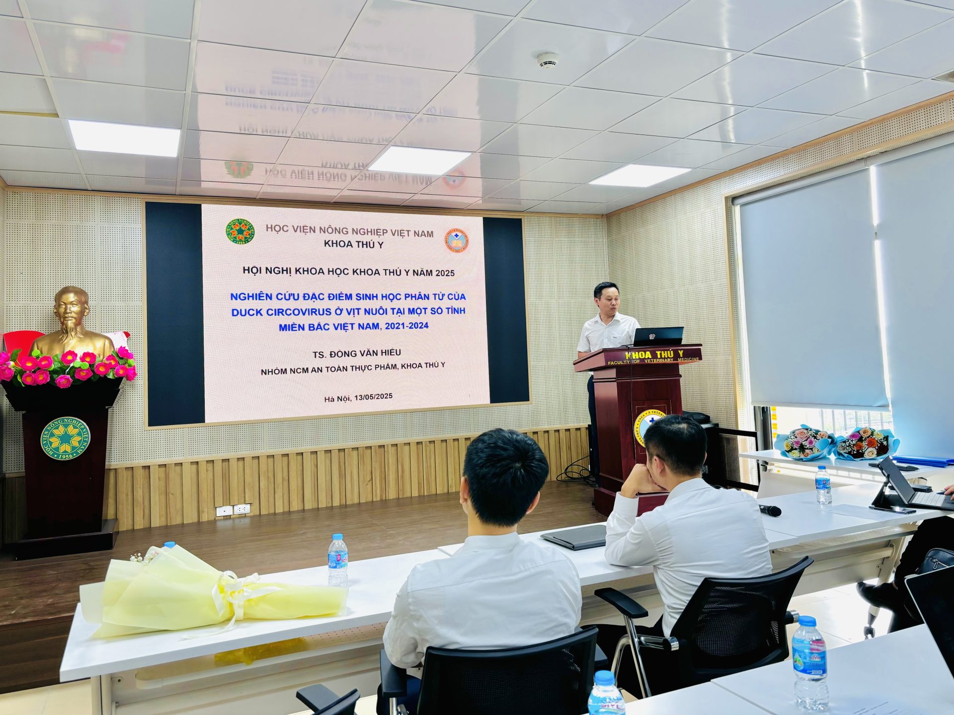 Chiều ngày 13 tháng 5 năm 2025, tại phòng 409 – Khoa Thú y, Học viện Nông nghiệp Việt Nam đã diễn ra Hội nghị Khoa học Khoa Thú y 2025 với chủ đề “Tổng kết – Vinh danh – Chia sẻ tri thức”. Đây là sự kiện thường niên quan trọng nhằm tổng kết hoạt động nghiên cứu khoa học của các nhóm nghiên cứu trong năm qua, đồng thời ghi nhận và tôn vinh những tập thể có thành tích xuất sắc, góp phần xây dựng môi trường học thuật chuyên sâu và bền vững tại Khoa Thú y.