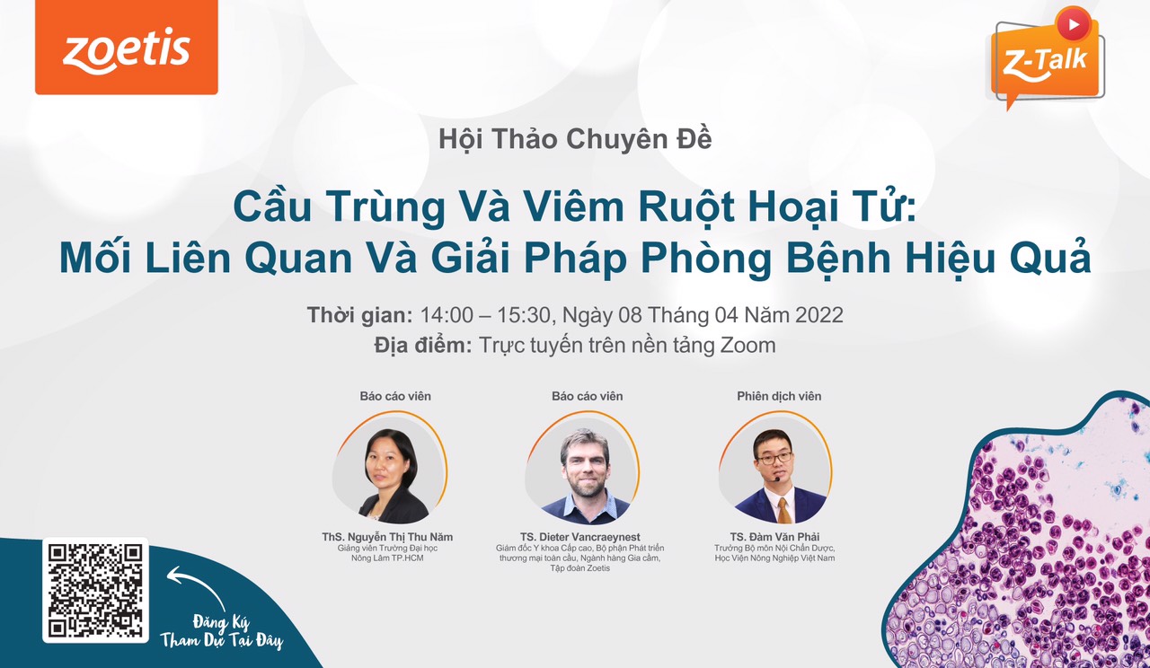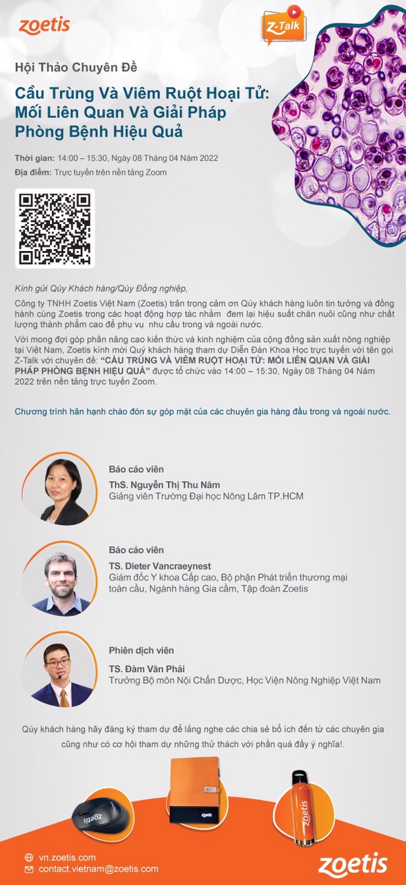 Với mong đợi góp phần nâng cao kiến thức và kinh nghiệm của cộng đồng sản xuất nông nghiệp tại Việt Nam, kính mời quý khách hàng tham dự diễn đàn khoa Học trực tuyến với tên gọi Z-Talk với chuyên đề: ” CẦU TRUNG VÀ VIÊM RUỘT HOẠI TỬ: MỐI LIÊN QUAN VÀ GIẢI PHÁP PHÒNG BỆNH HIỆU QUẢ” được tổ chức vào 14:00-15:30. Ngày 08 tháng 04 Năm 2022 trên nền tảng trực tuyến Zoom
