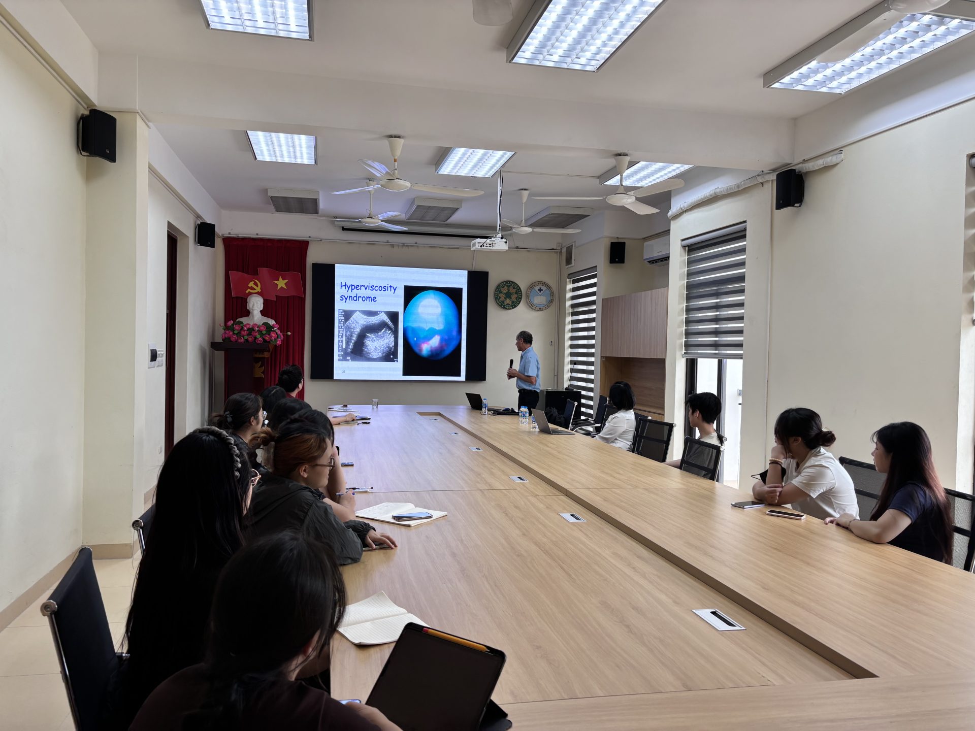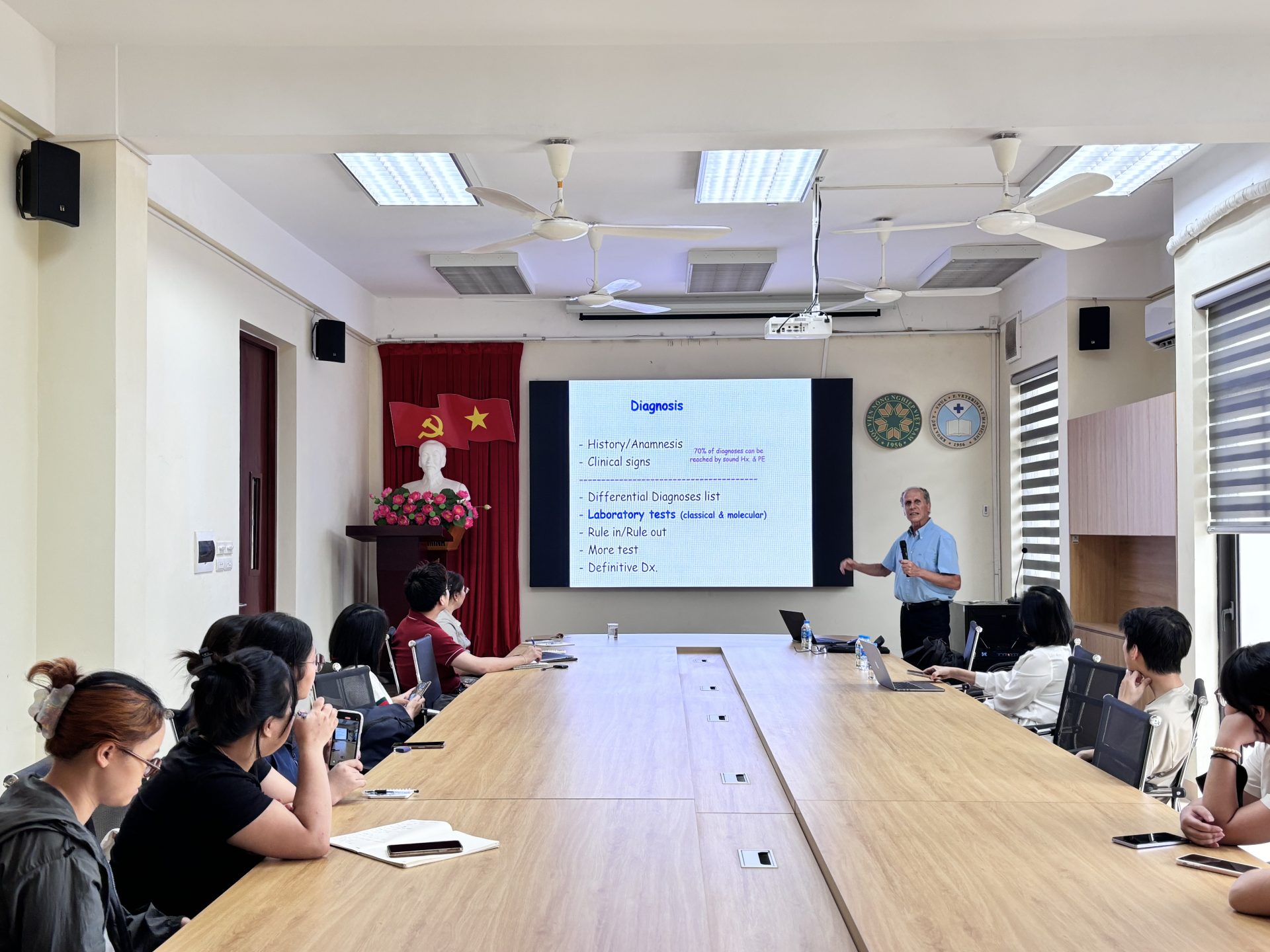 Phần thảo luận cuối buổi đã thu hút nhiều câu hỏi từ giảng viên và sinh viên, tập trung vào việc ứng dụng các phương pháp chẩn đoán tiên tiến trong điều kiện phòng thí nghiệm ở Việt Nam, cũng như khả năng hợp tác nghiên cứu song phương trong tương lai. Giáo sư Harrus bày tỏ mong muốn hợp tác lâu dài với Khoa Thú y trong các dự án nghiên cứu về ký sinh trùng thú y và phát triển các sản phẩm chăm sóc thú cưng.