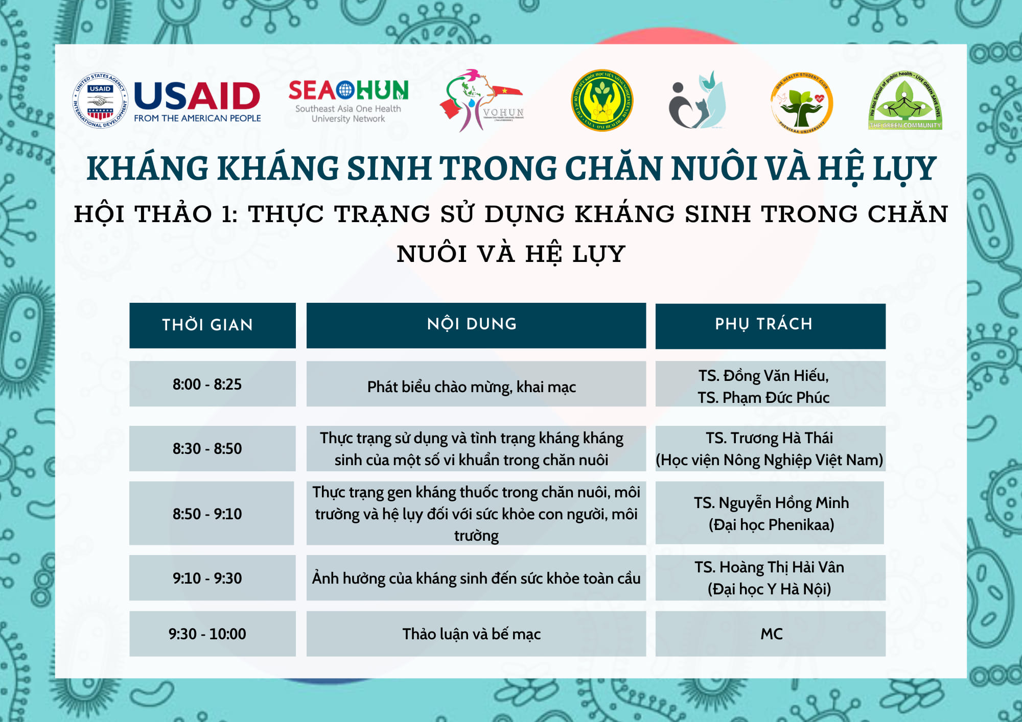 Kháng kháng sinh đang là một vấn đề sức khỏe quan tâm nhất và cấp bách nhất hiện nay . Chính vì thế, 4 câu lạc bộ Một Sức Khoẻ trực thuộc Mạng lưới Một Sức Khoẻ Các Trường Đại Học Việt Nam(VOHUN) tại Hà Nội gồm