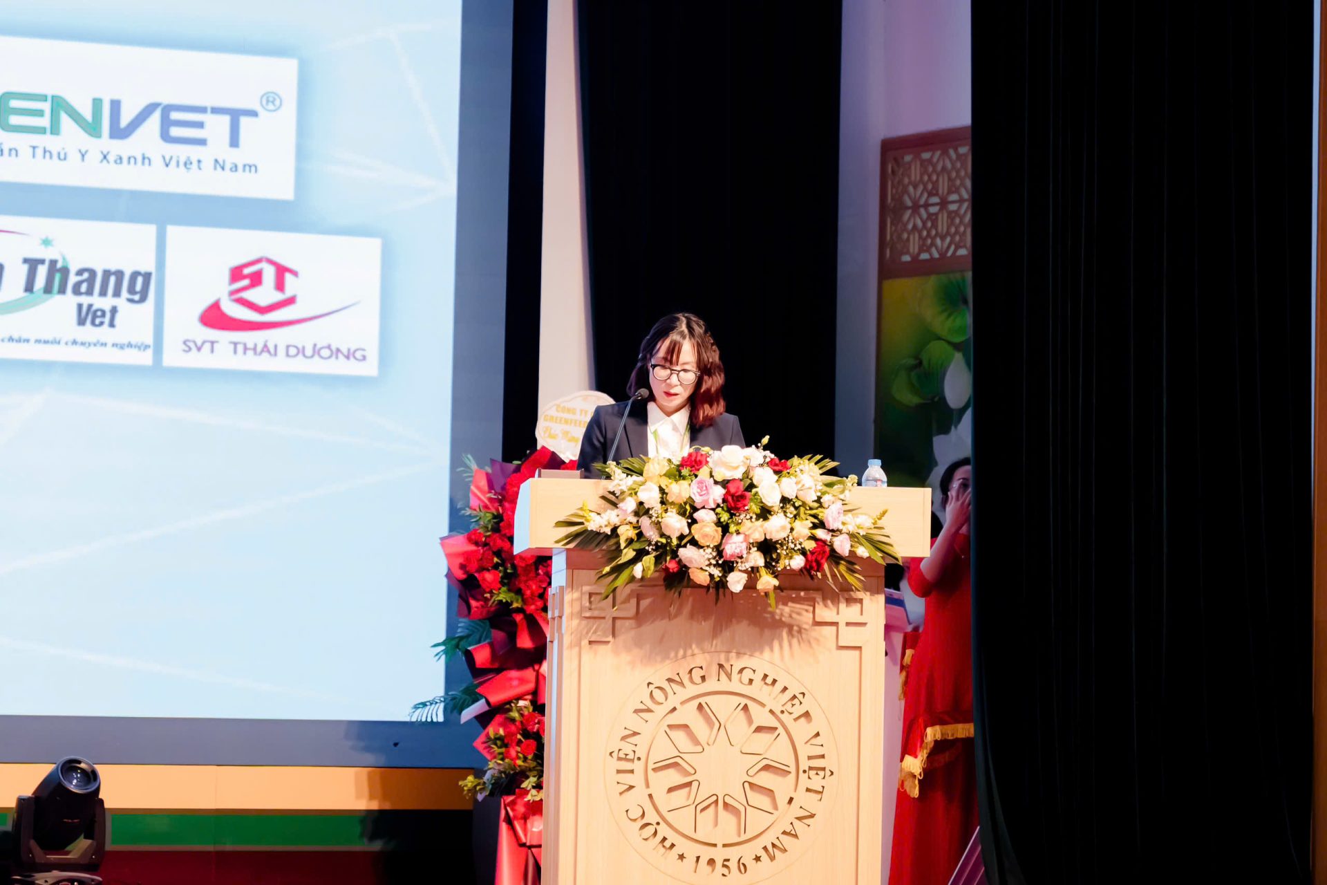 Phát biểu khai mạc buổi lễ, PGS.TS. Bùi Trần Anh Đào, thay mặt Ban chủ nhiệm Khoa, đã gửi lời cảm ơn chân thành đến quý vị đại biểu và các doanh nghiệp đối tác đã đến chung vui. Trưởng Khoa tự hào khẳng định, năm học 2024-2025 vừa qua là một chặng đường đáng nhớ, Khoa Thú y tiếp tục gặt hái nhiều thành tựu quan trọng trên cả ba trụ cột: đổi mới đào tạo, đẩy mạnh nghiên cứu khoa học ứng dụng và mở rộng hợp tác quốc tế.