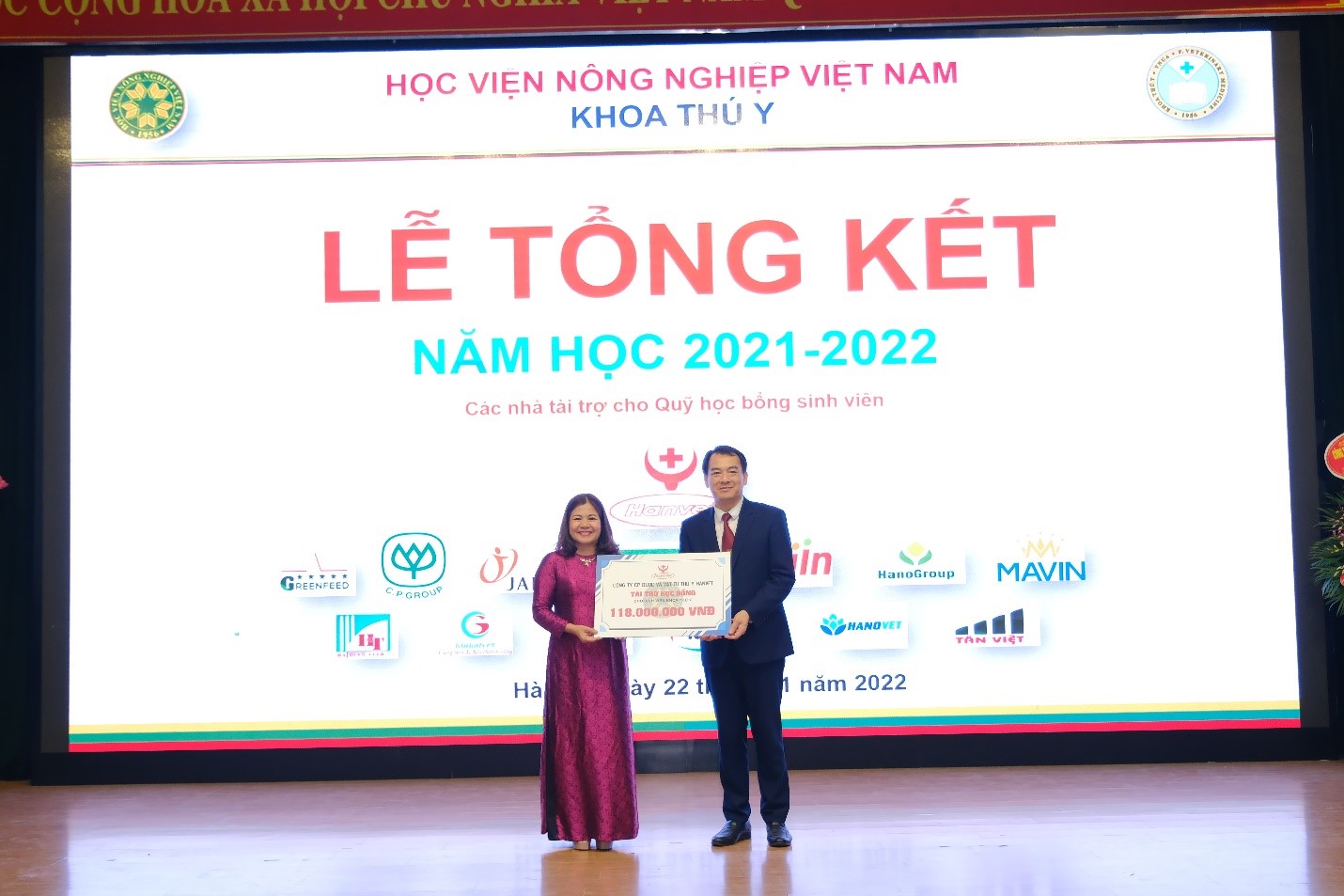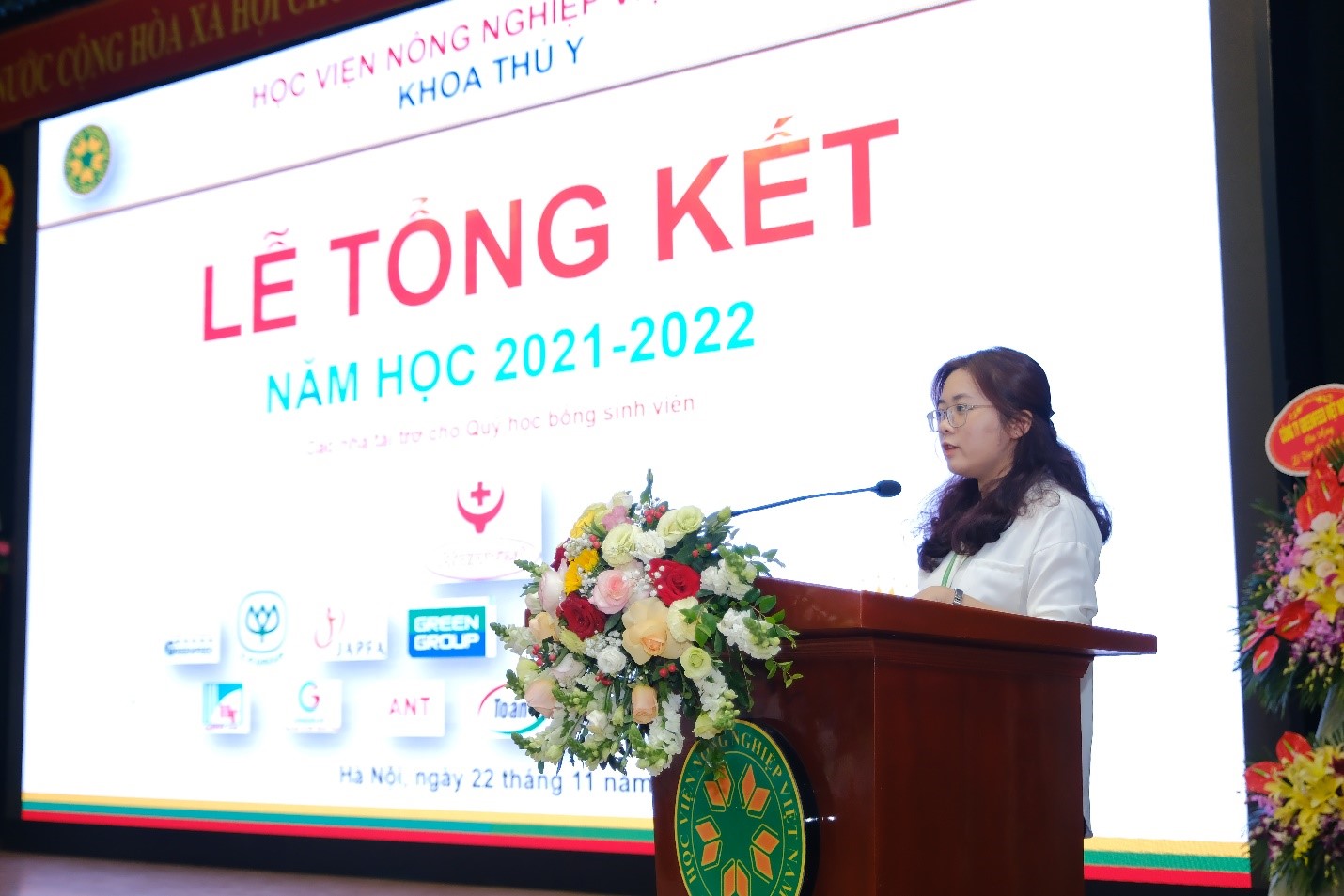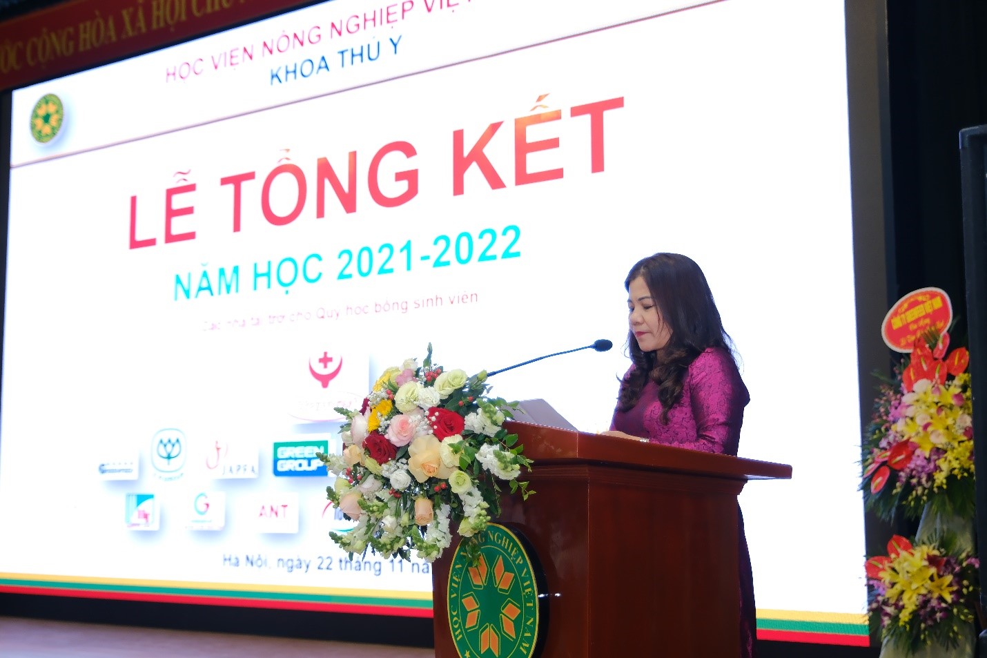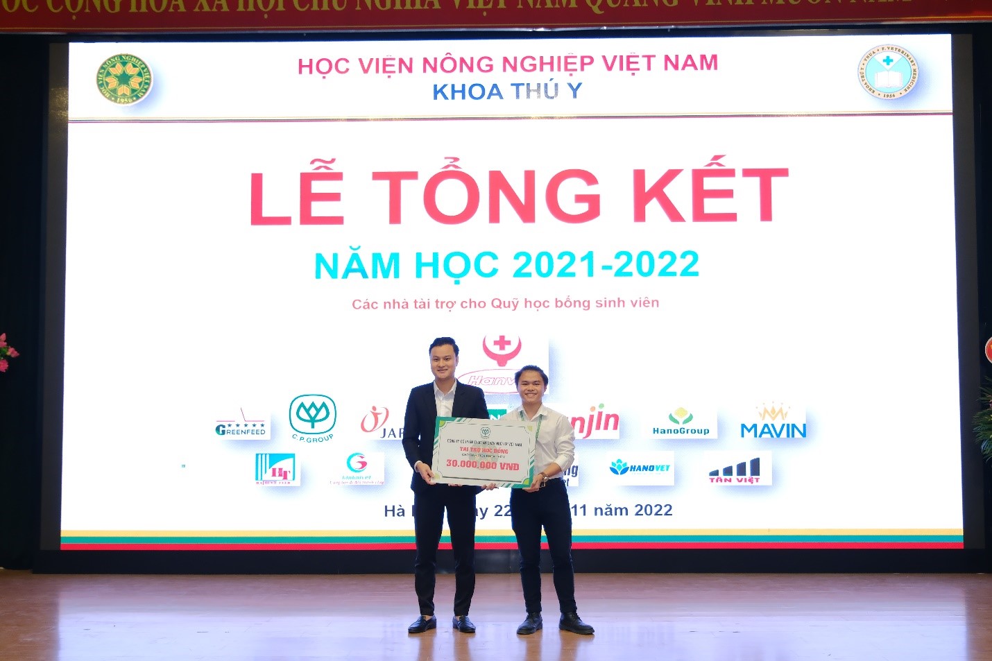 Hoà chung không khí kỷ niệm 40 năm ngày Nhà giáo Việt Nam (20/11/1982 – 20/11/2022), tối ngày 22/11/2022, Khoa Thú y long trọng tổ chức Lễ tổng kết năm học 2021 – 2022 tại Hội trường A (Nguyễn Đăng 207), nhằm tổng kết các phong trào học tập và công tác sinh viên trong năm học vừa qua; Trao học bổng cho sinh viên; Kịp thời động viên, khích lệ các bạn sinh viên có thành tích cao trong học tập, trong công tác Đoàn – Hội. Đây cũng là dịp để thầy trò cùng nhìn nhận lại những tồn tại khó khăn vướng mắc trong năm học vừa qua, đề ra phương hướng năm học mới 2022 – 2023.