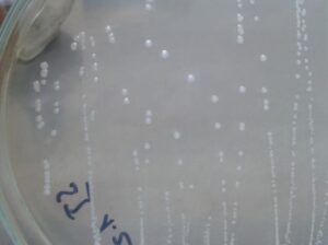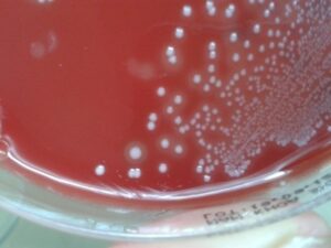 Hình 1b. Hình thái khuẩn lạc Streptococcus spp. trên môi trường thạch máu. |