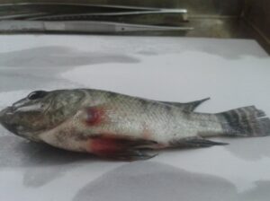 Trước khi tiến hành phân lập, giám định vi khuẩn gây bệnh, những mẫu cá bị bệnh ngoài da do kí sinh trùng hoặc nấm được kiểm tra để loại bỏ.