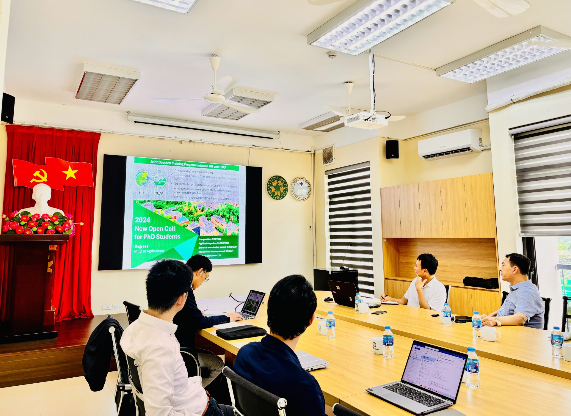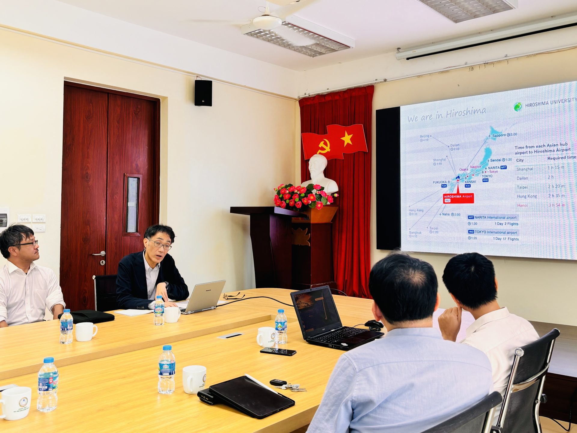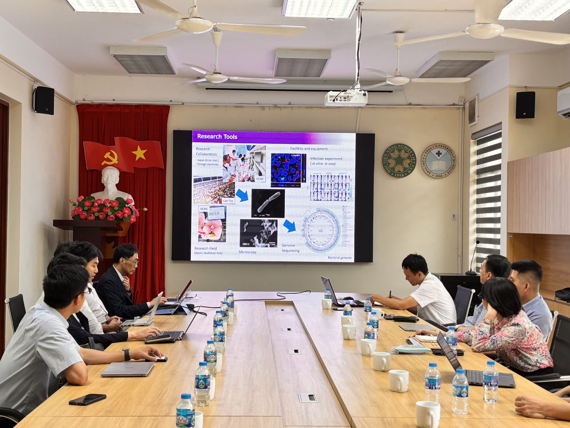 Mở đầu chương trình, hai bên đã giới thiệu tổng quan về thế mạnh đào tạo, định hướng phát triển và các lĩnh vực nghiên cứu trọng tâm. Đặc biệt, phía Đại học Hiroshima đã chia sẻ thông tin chi tiết về các chương trình sau đại học – thạc sĩ và tiến sĩ – với các chuyên ngành liên quan đến thú y, sinh học ứng dụng và công nghệ sinh học, cùng nhiều chính sách học bổng hấp dẫn dành cho sinh viên quốc tế, trong đó có Việt Nam.