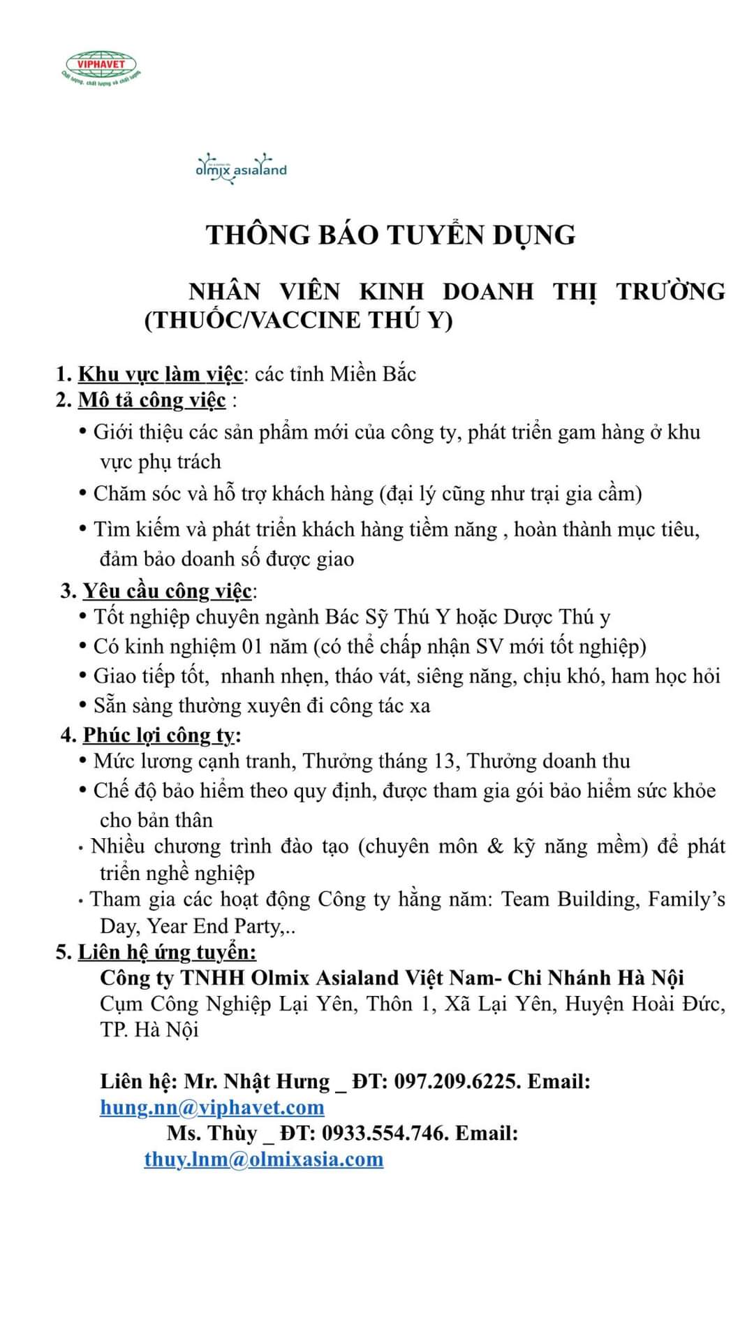 Tuyển dụng - Việc làm Thông báo tuyển dụng VIPHAVET Ngày đăng: 06/12/2022 by Khoa Thú y Tin cùng thể loại VKB group Tuyển dụng Tuyển dụng – việc làm Công ty TNHH Japfa Comfeed Việt Nam thông báo tuyển dụng KHOA THÚ Y THAM DỰ HỘI THẢO QUỐC TẾ LẦN THỨ NHẤT VỀ THÚ Y, CHĂM SÓC & HUẤN LUYỆN NGỰA