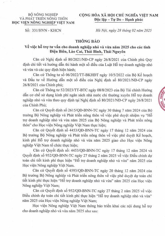Thông báo Thông báo về việc hỗ trợ tư vấn cho các doanh nghiệp nhỏ và vừa năm 2025 cho các tỉnh Điện Biên, Lào Cai, Thái Bình , Thái Nguyên Ngày đăng: 03/04/2025 by Khoa Thú y Tin cùng thể loại NGHIÊN CỨU ĐÁNH GIÁ ĐỘC LỰC CỦA CHỦNG VIRUS DỊCH TẢ LỢN CHÂU PHI VNUA – ASFV – L01 PHÂN LẬP TẠI TỈNH HÀ NAM – VIỆT NAM TRÊN LỢN THÍ NGHIỆM KHẢ NĂNG ỨC CHẾ CỦA CHẾ PHẨM CAO THẢO DƯỢC VNUA-HERBAL EXTRACT MIXTURE FOR METRITIS CN–52/15 ĐỐI VỚI VI KHUẨN STAPHYLOCOCCUS SPP. VÀ STREPTOCOCCUS SPP. PHÂN LẬP TỪ DỊCH VIÊM TỬ CUNG LỢN NÁI SAU KHI ĐẺ VÀ KẾT QUẢ THỬ NGHIỆM ĐIỀU TRỊ Chương trình trao đổi sinh viên (STEP-YU) tại ĐH Yamagata, Nhật Bản Tuyển sinh đào tạo trình độ thạc sĩ năm 2025 Chương trình trao đổi sinh viên học kỳ 1 NH 2026-2027 tại ĐHQG Jeonbuk, Hàn Quốc