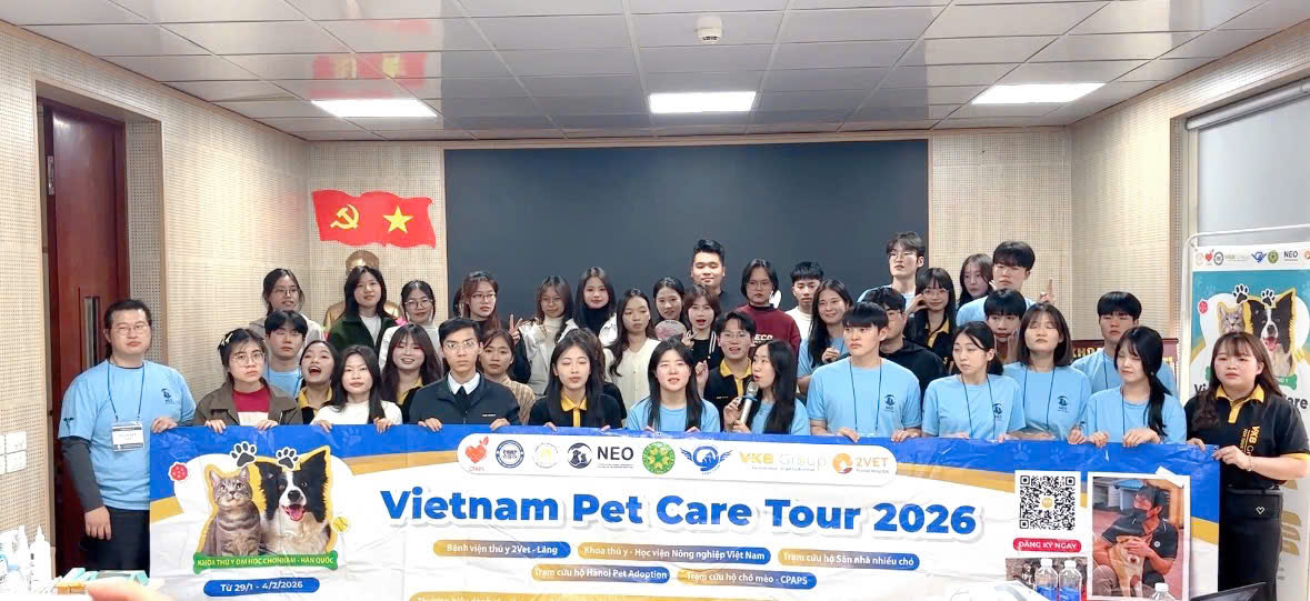Ngày 04/02/2026, Khoa Thú y – Học viện Nông nghiệp Việt Nam (VNUA) đã đón tiếp đoàn bác sĩ và sinh viên đến từ Khoa Thú y, Đại học Chonnam (Hàn Quốc) trong khuôn khổ chương trình Vietnam Pet Care Tour 2026. Chương trình diễn ra với nhiều hoạt động học thuật và giao lưu ý nghĩa, góp phần thúc đẩy hợp tác quốc tế trong đào tạo, nghiên cứu và thực hành lâm sàng thú y.