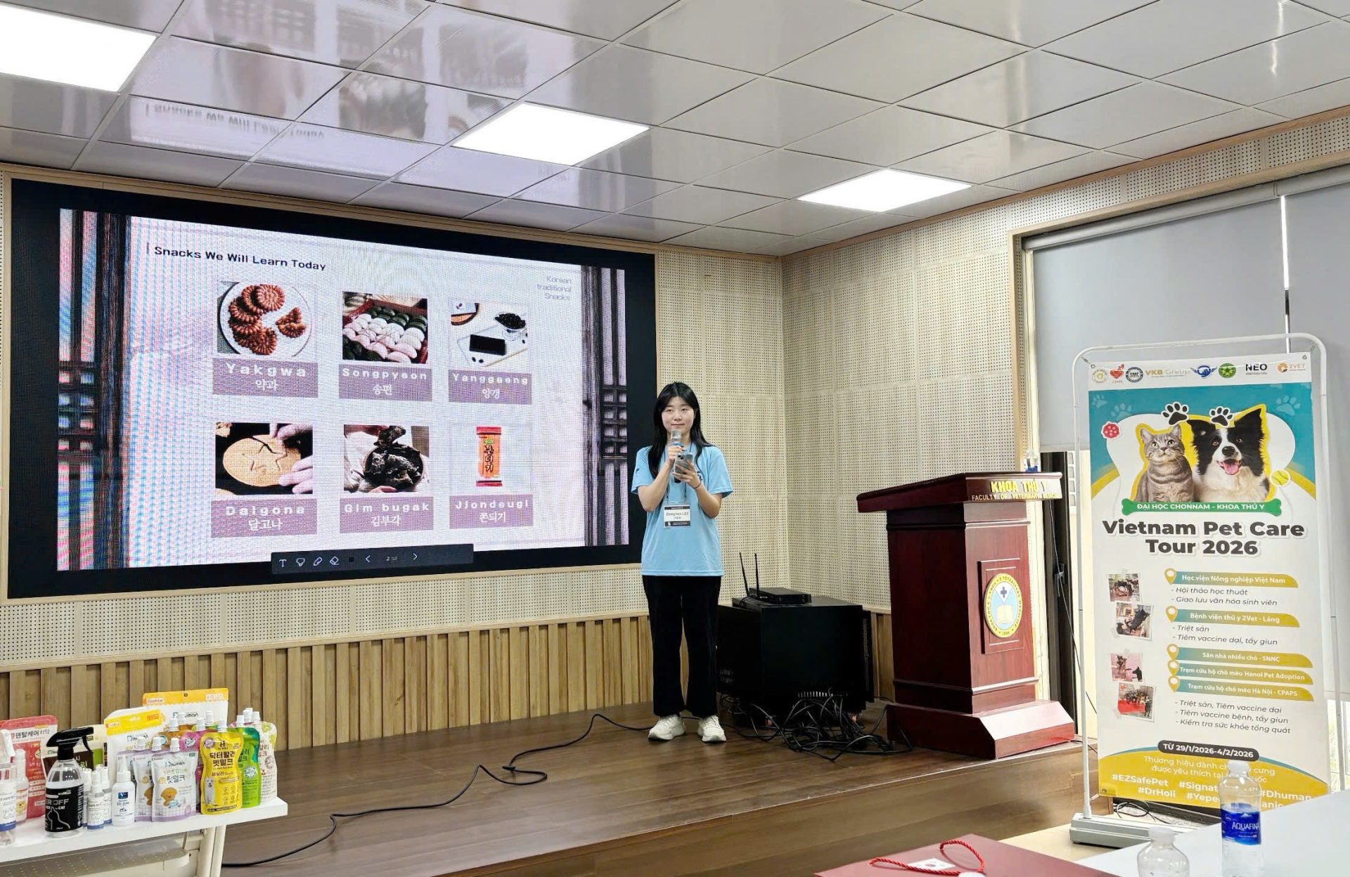 Bên cạnh hoạt động học thuật, chương trình còn tổ chức các hoạt động giao lưu văn hóa, tạo không khí cởi mở, thân thiện, qua đó tăng cường sự hiểu biết, gắn kết giữa giảng viên, sinh viên Khoa Thú y – VNUA với các đối tác quốc tế đến từ Hàn Quốc. Chương trình Vietnam Pet Care Tour 2026 khép lại trong không khí sôi nổi, để lại nhiều kiến thức chuyên môn sâu, và ấn tượng tốt đẹp với sinh viên Khoa Thú y, Học viện Nông nghiệp Việt Nam. Những giá trị mà chương trình mang lại về lan tỏa tri thức, tinh thần hợp tác quốc tế và các hoạt động hướng tới sức khỏe, phúc lợi thú cưng sẽ tiếp tục được duy trì và phát triển trong thời gian tới.