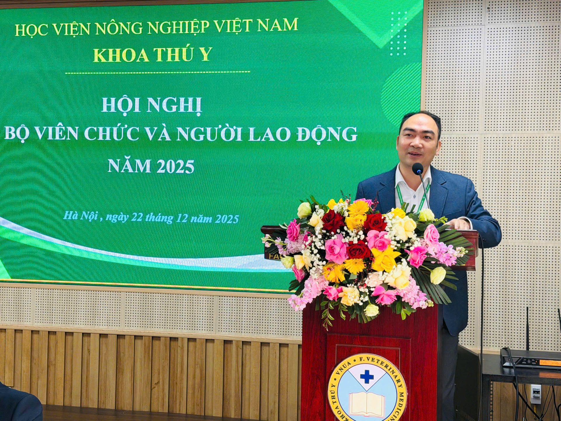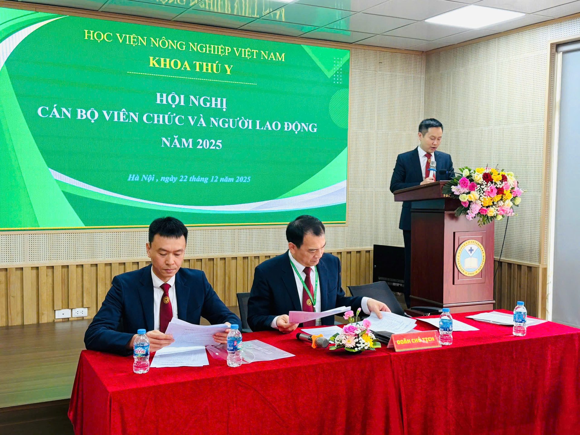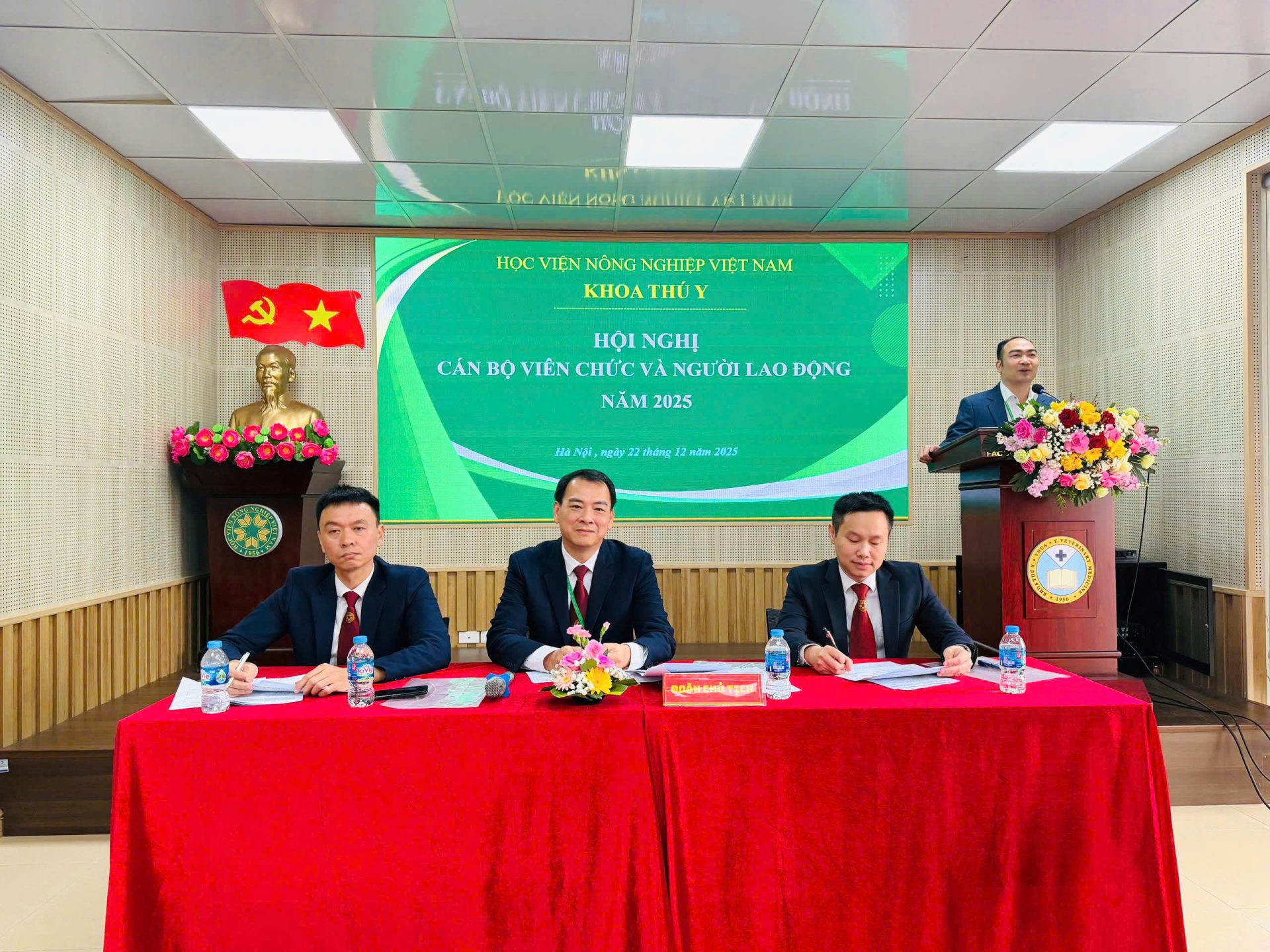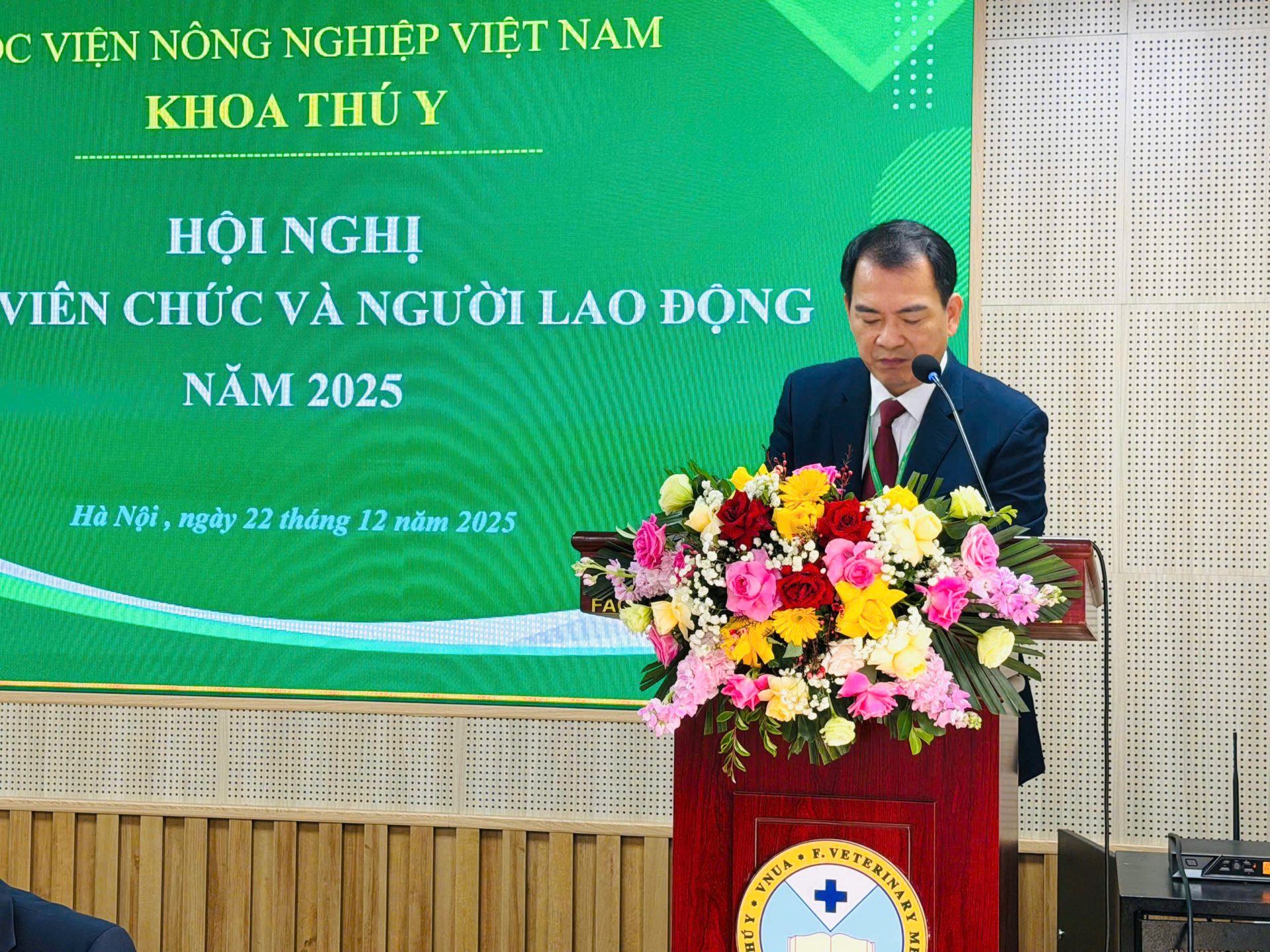 (Hà Nội) – Sáng ngày 22/12/2025, Khoa Thú y (Học viện Nông nghiệp Việt Nam) đã tổ chức Hội nghị Cán bộ, viên chức và người lao động năm 2025. Sự kiện có sự tham gia của gần 100 đại biểu, tập trung thảo luận các giải pháp thực tế nhằm nâng cao chất lượng đào tạo và nghiên cứu khoa học cho năm 2026.
