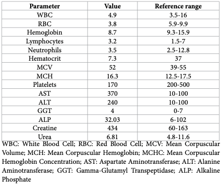 Bằng cách sử dụng phân tích sinh học phân tử dựa trên đoạn gene 18S rRNA cho loài Babesia spp. kết hợp với phân tích phát sinh loài sử dụng phần mềm MEGA X, tiến hành so sánh trình tự trong nghiên cứu này với các nghiên cứu khác của Trung Quốc, Thái Lan và Nhật Bản (Hình 1). Kết quả đã khẳng định sự lưu hành của loài Babesia vogeli trên mèo tại Việt Nam. Bên cạnh đó, xét nghiệm sinh lý và sinh hoá máu cũng cho thấy sự biến động của một số chỉ số. Trong trường hợp này, nhiễm Babesia có thể ảnh hưởng đến chức năng gan và thận do sự gia tăng nồng độ ALT, AST và creatinine (Hình 2).